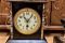 Zegar oraz kandelabry w całości wykonany z czarnego polerowanego marmuru wstawki wykonane z ceglastego marmuru,góra wykonana z mosiądzu patynowanego kolorem starego złota Tarcza zegara wykonana z delikatnej porcelany,ręcznie malowana, z wyraźnymi arabskimi cyframi, Kluczyk oraz wahadło oczywiście dołączony do zegara. Mechanizm sygnowany wybitą pieczęcią z napisem oraz numerami.
